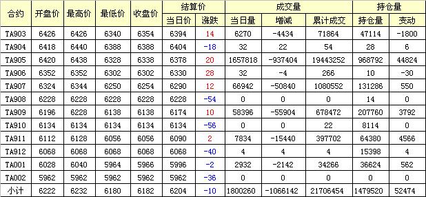 主力TA905合約當(dāng)日交易走勢