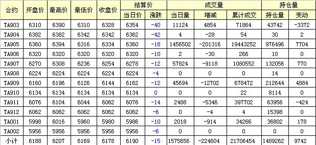 主力TA905合約當日交易走勢