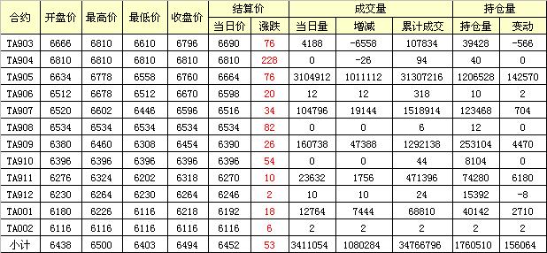 主力TA905合約當(dāng)日交易走勢(shì)