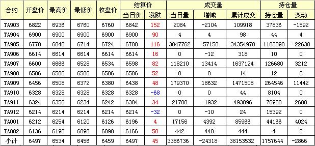 主力TA905合約當(dāng)日交易走勢