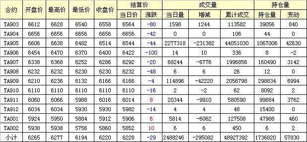 主力TA905合約當(dāng)日交易走勢(shì)