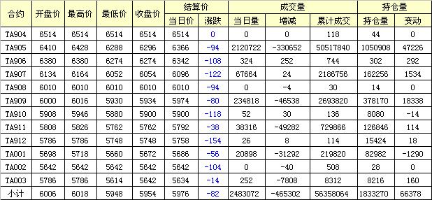 主力TA905合約當(dāng)日交易走勢(shì)