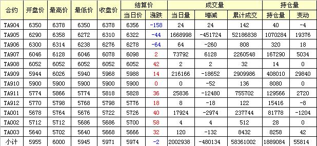 主力TA905合約當(dāng)日交易走勢