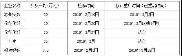 春節(jié)期間檢修集中,多在2月集中重啟。3月來看,滌綸短纖檢修計(jì)劃45萬噸左右,重啟37.5萬噸,具體數(shù)據(jù)如下:另外在1季度中,江陰向陽存在8萬噸新投產(chǎn)計(jì)劃,供應(yīng)端來看,滌綸短纖供應(yīng)壓力不大,檢修和重啟的產(chǎn)能基本可以抵消,使得滌綸短纖行業(yè)開工率處于較正常水平。