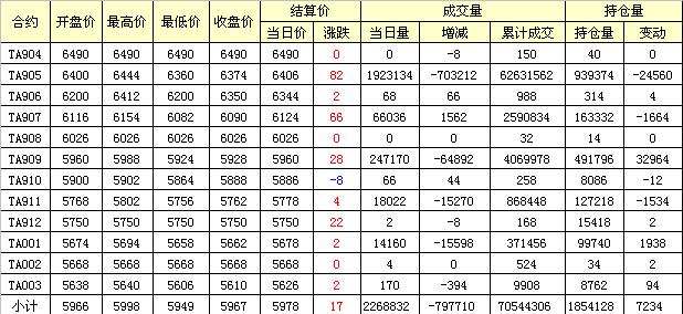 主力TA905合約當(dāng)日交易走勢