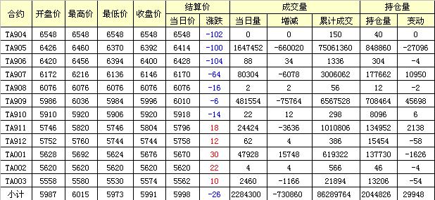 主力TA905合約當(dāng)日交易走勢