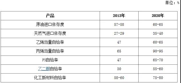 表1十三五規(guī)劃部分產(chǎn)品自給率和進(jìn)口依存度計(jì)劃表