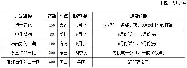 表22019年中國(guó)PX產(chǎn)能投放計(jì)劃表