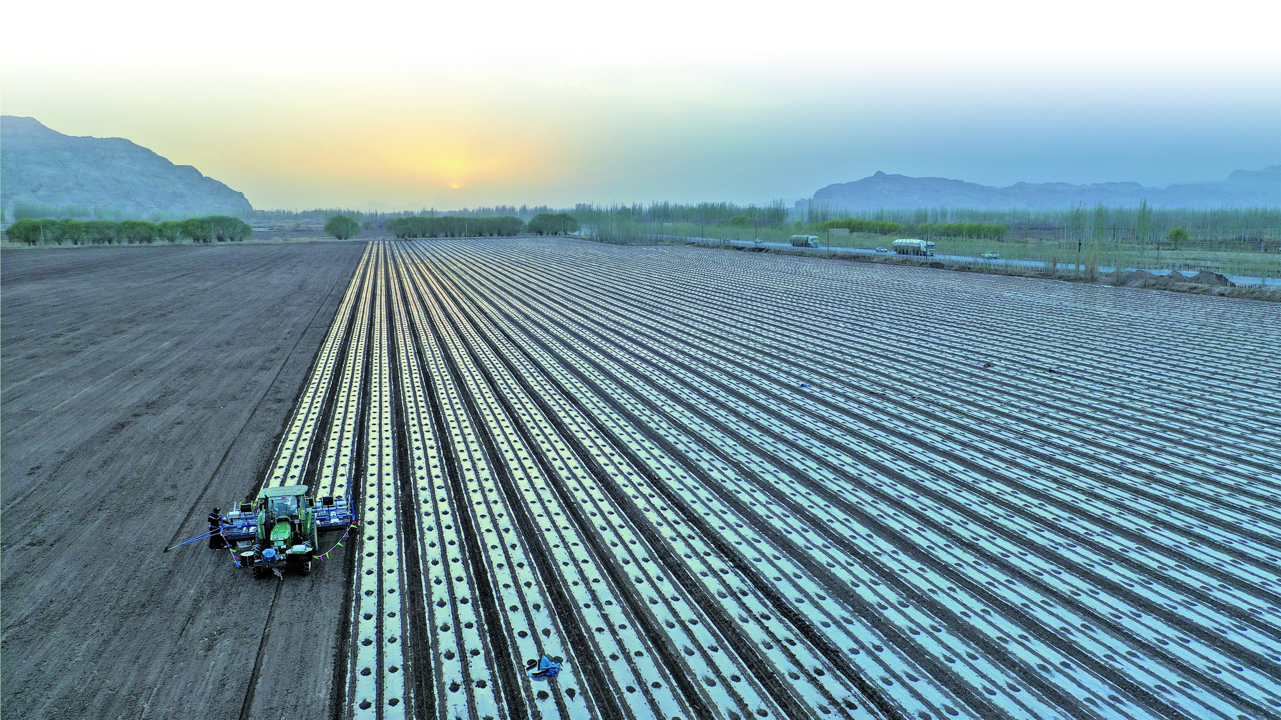 4月1日兵團(tuán)第三師51團(tuán)職工在播種棉花。作為我國(guó)重要產(chǎn)棉區(qū)之一的小海子墾區(qū),今春計(jì)劃播種60萬(wàn)畝棉花,當(dāng)?shù)芈毠と罕姄屪デ绾锰鞖獠シN新棉,田間地頭一派繁忙。