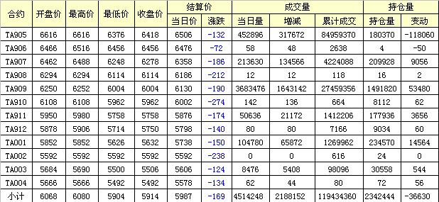 主力TA905合約當(dāng)日交易走勢(shì)