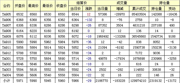 主力TA905合約當(dāng)日交易走勢