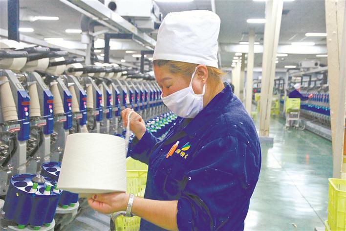 4月20日,新疆新賽精紡有限公司生產(chǎn)車間班長(zhǎng)在檢查成紗質(zhì)量。