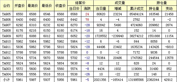 主力TA905合約當(dāng)日交易走勢(shì)