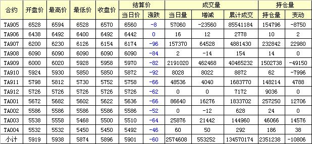 主力TA905合約當(dāng)日交易走勢