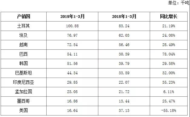 表1 2019年1-3月滌綸長絲出口貿(mào)易前十名單