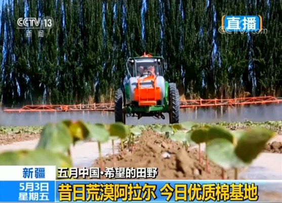 這些大片棉田過去都曾是荒漠戈壁,如今它已是我國優(yōu)質(zhì)棉基地主產(chǎn)區(qū)。進(jìn)入5月當(dāng)?shù)刈罡邭鉁匾验_始突破25攝氏度,這也是控制棉花瘋長緊要關(guān)頭。一方面要幫助棉花在沙土地上根壯苗旺,另一方面要合理控制棉花身高,便于秋后機械化采摘。