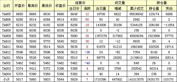 主力TA909合約當(dāng)日交易走勢(shì)