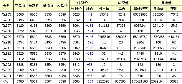 主力TA909合約當(dāng)日交易走勢