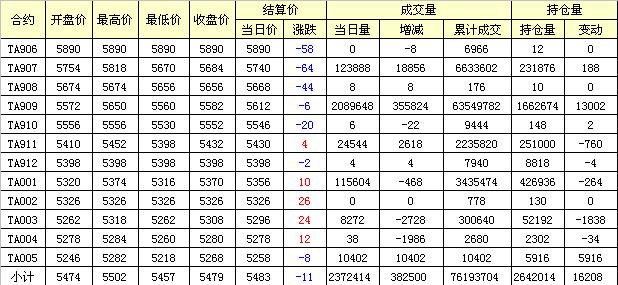 主力TA909合約當(dāng)日交易走勢