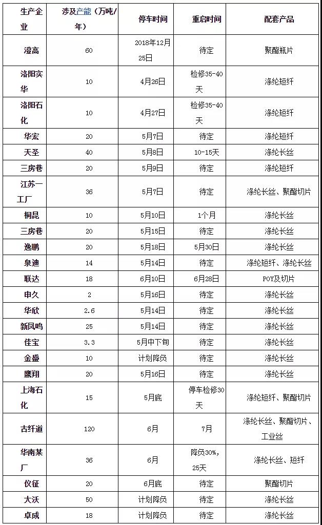 聚酯企業(yè)裝置動(dòng)態(tài)匯總
