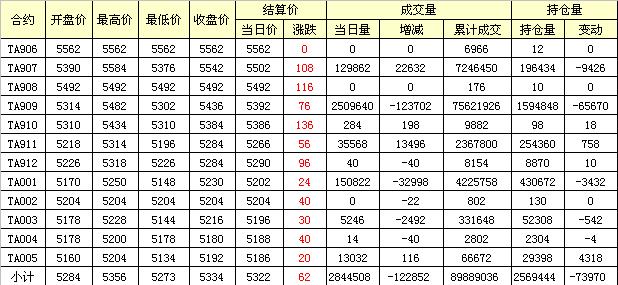 主力TA909合約當(dāng)日交易走勢(shì)