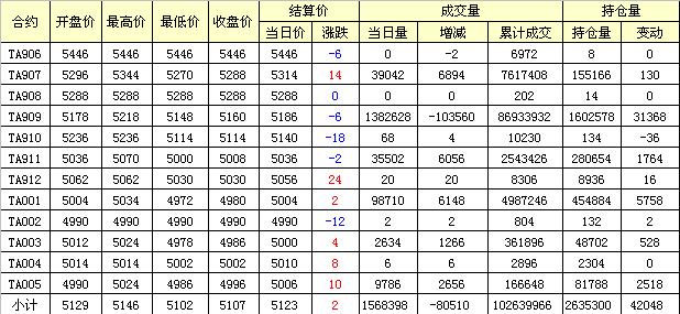 主力TA909合約當(dāng)日交易走勢