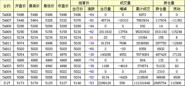主力TA909合約當(dāng)日交易走勢(shì)