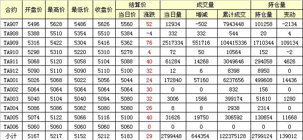 主力TA909合約當(dāng)日交易走勢