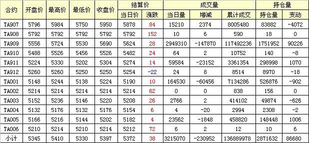 主力TA909合約當日交易走勢
