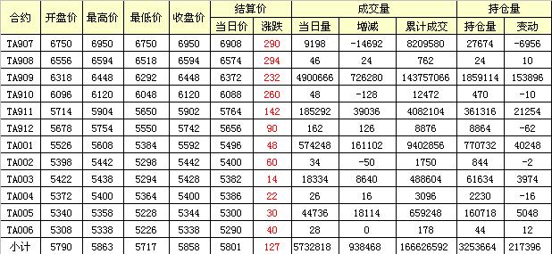 主力TA909合約當(dāng)日交易走勢