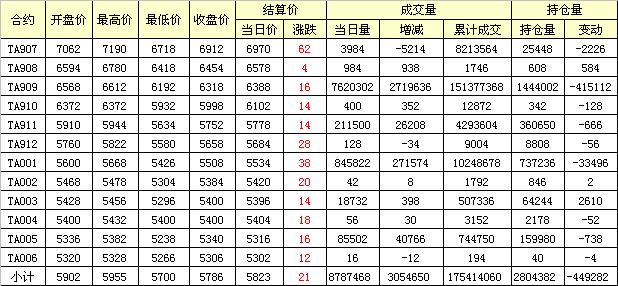 主力TA909合約當(dāng)日交易走勢(shì)