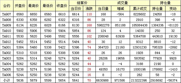 主力TA909合約當(dāng)日交易走勢