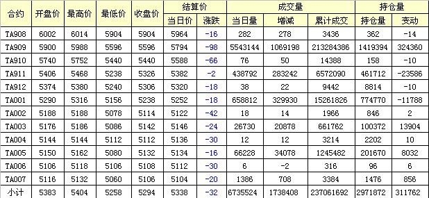 主力TA909合約當(dāng)日交易走勢