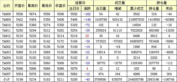 主力TA909合約當(dāng)日交易走勢(shì)