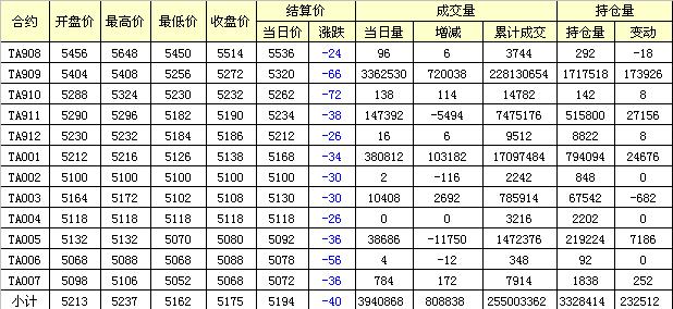 主力TA909合約當日交易走勢