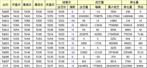 主力TA909合約當(dāng)日交易走勢