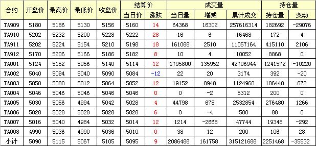 主力TA909合約當(dāng)日交易走勢