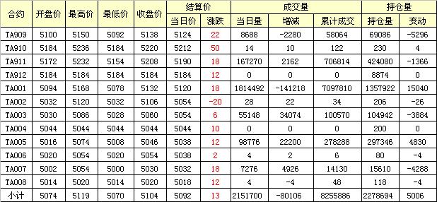 主力TA909合約當(dāng)日交易走勢