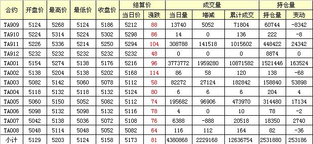 主力TA909合約當(dāng)日交易走勢(shì)