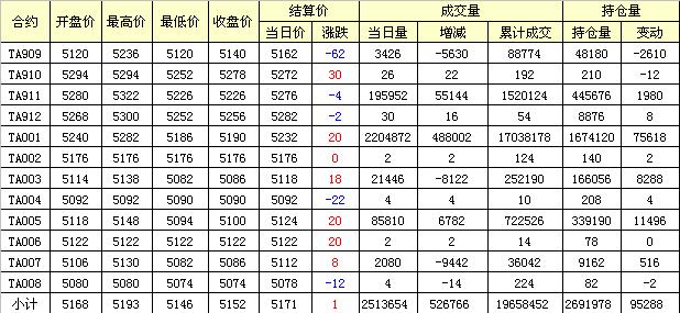 主力TA909合約當(dāng)日交易走勢(shì)