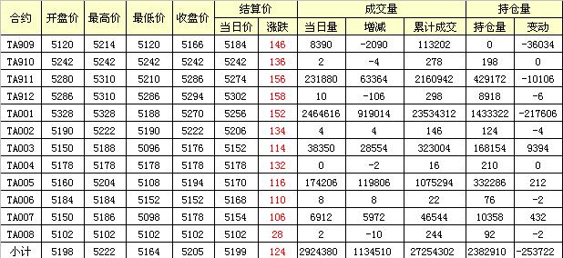 主力TA909合約當日交易走勢