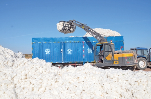 金秋十月,我國(guó)重要的商品棉和優(yōu)質(zhì)棉種植基地新疆阿拉爾市迎來(lái)棉花采收旺季。今年阿拉爾市種植棉花200萬(wàn)畝,預(yù)計(jì)產(chǎn)籽棉84萬(wàn)噸。在國(guó)家棉補(bǔ)政策激勵(lì)下,阿拉爾墾區(qū)各團(tuán)場(chǎng)棉農(nóng)及時(shí)將豐收新棉裝車,拉運(yùn)交售到團(tuán)場(chǎng)加工廠。圖為10月19日新疆生產(chǎn)建設(shè)兵團(tuán)第一師二團(tuán)工人在裝運(yùn)棉花?!?/p>