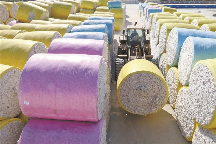 10月15日,一輛叉車在七師一二三團(tuán)軋花廠叉運(yùn)棉花。今年,七師180多萬畝棉花97%以上實(shí)行機(jī)采作業(yè),使棉花采收時間較往年提前10多天,為秋季騰地打下良好基礎(chǔ)。