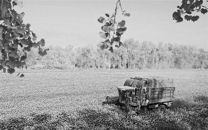 10月20日,二師二十九團(tuán)一塊棉田里,一臺(tái)采棉機(jī)開(kāi)足馬力搶收新棉。今年,該團(tuán)種植棉花21萬(wàn)畝,機(jī)采面積達(dá)100%。經(jīng)二師鐵門關(guān)市農(nóng)業(yè)部門測(cè)產(chǎn),今年二十九團(tuán)籽棉單產(chǎn)可突破400公斤。