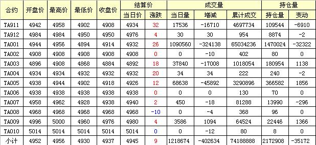 主力TA001合約當(dāng)日交易走勢(shì)