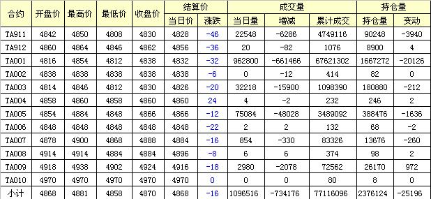 主力TA001合約當(dāng)日交易走勢(shì)