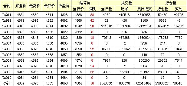 主力TA001合約當(dāng)日交易走勢