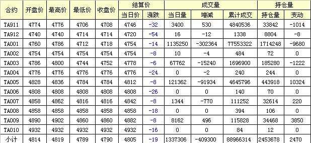 主力TA001合約當(dāng)日交易走勢(shì)