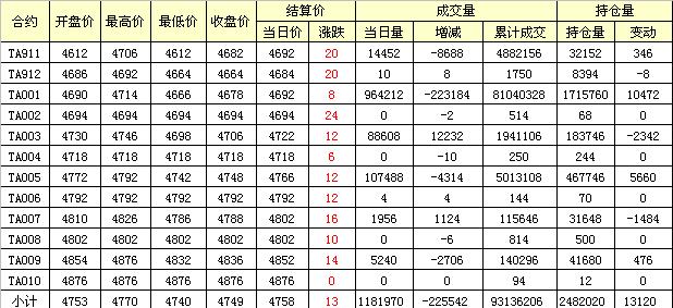 主力TA001合約當(dāng)日交易走勢