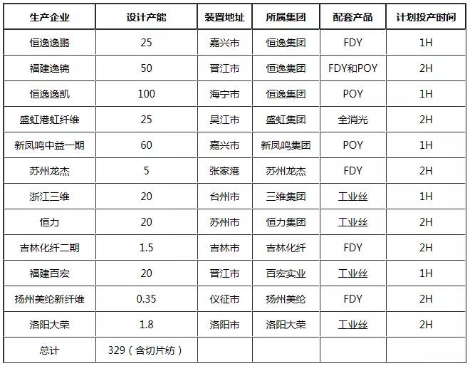 2020年我國滌綸長絲新增產(chǎn)能投產(chǎn)計劃表